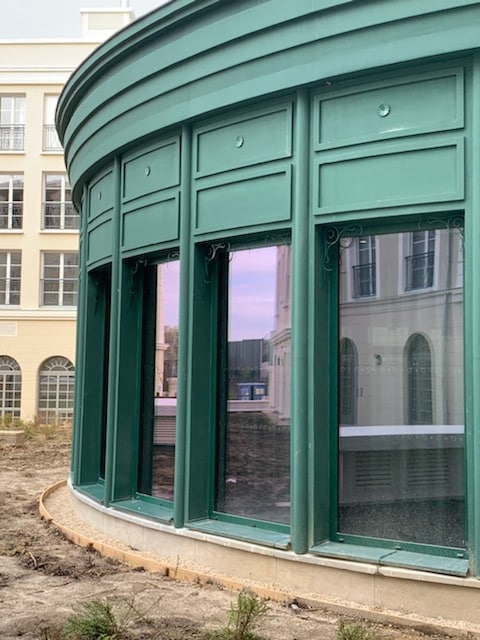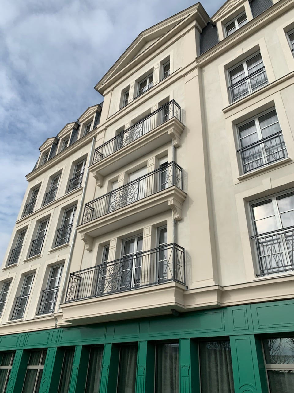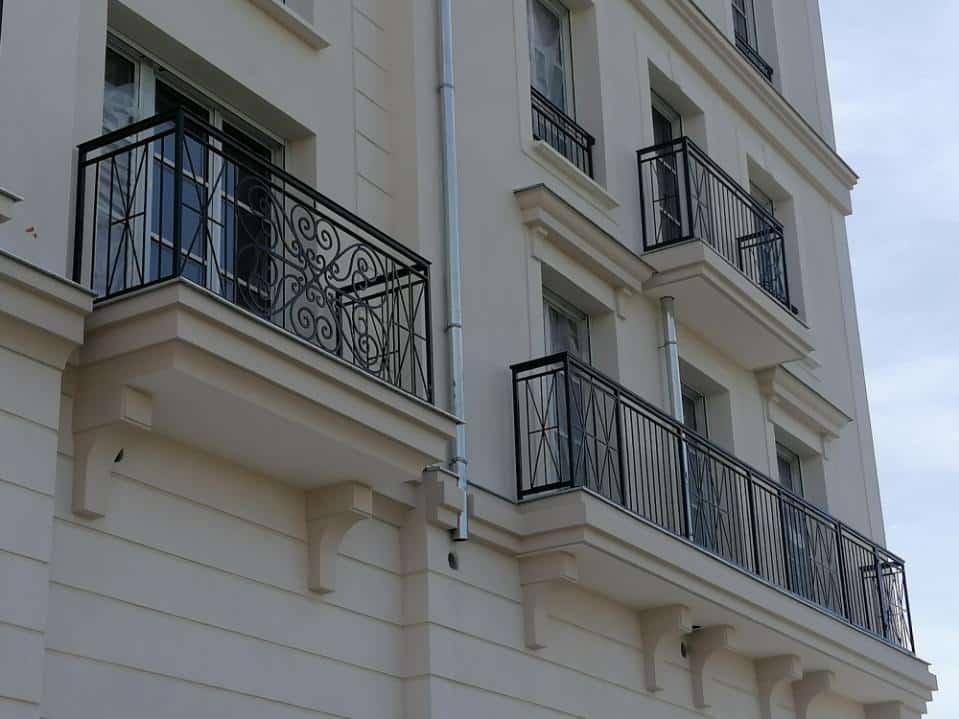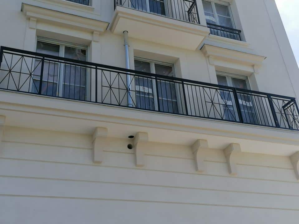 Réalisation à Serris par A.B.E.L : fabrication et pose sur mesure de garde-corps et éléments métalliques pour des immeubles d’habitation.